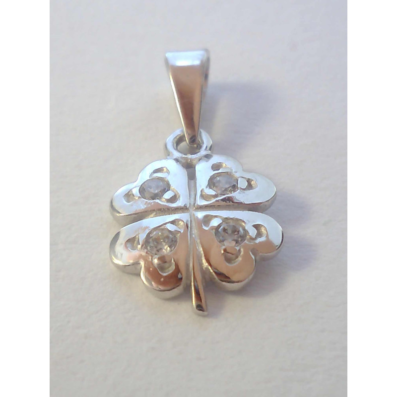 Zlatý prívesok štvorlístok biele zlato zirkóny DI068B 14 karátov 585/1000 0,68g