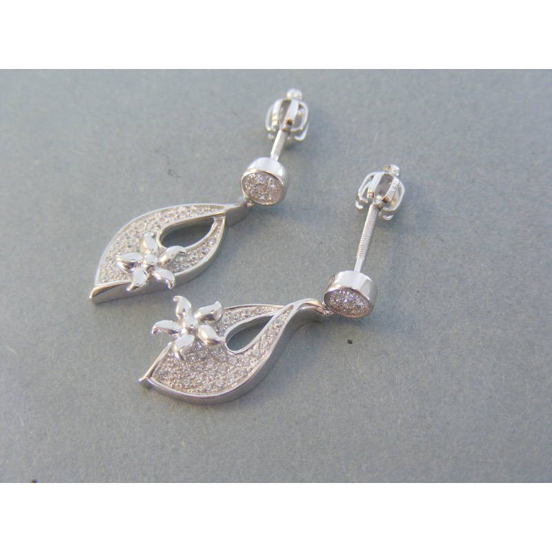 Visiace dámske náušnice so zapínanim šrubovačky, zdobené sú kamienkami zirkónu, náušnice sú vyrobené zo striebra.