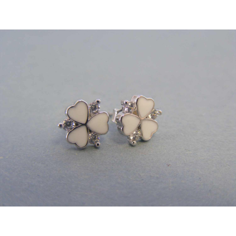 Strieborné dámske náušnice trojlístky zirkóny VAS158 925/1000 1,58g
