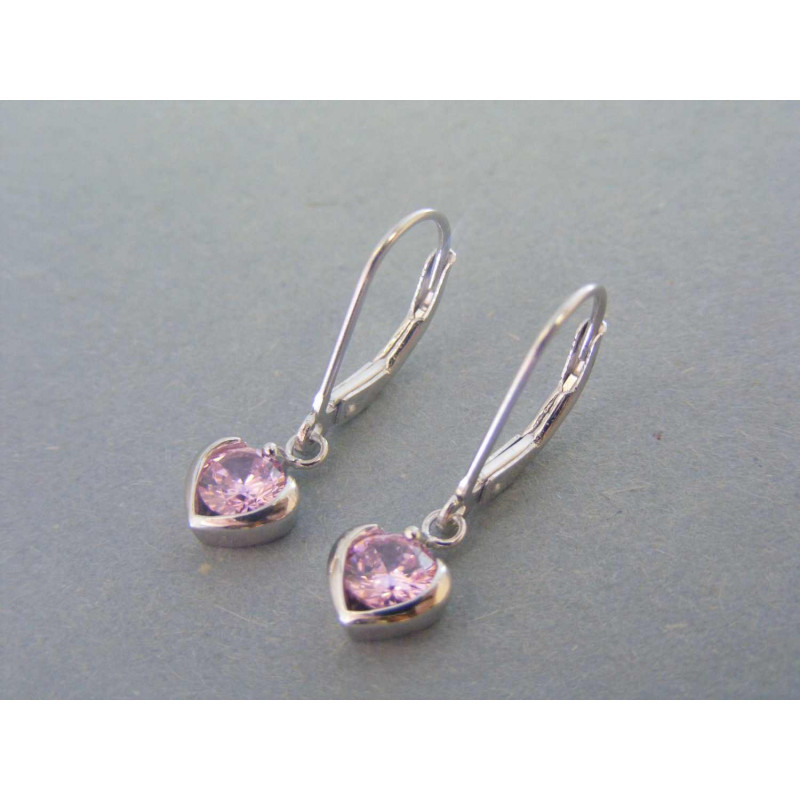 Zaujímavé dámske náušnice srdiečka, ktoré sú zdobené ružovým zirkónom. Náušnice sú vyrobené zo striebra.