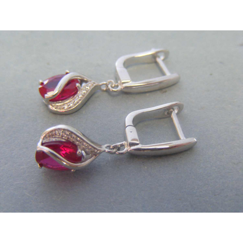 Zaujímavé dámske visiace náušnice, ktoré sú zdobené červeným zirkónom. Náušnice sú vyrobené zo striebra.