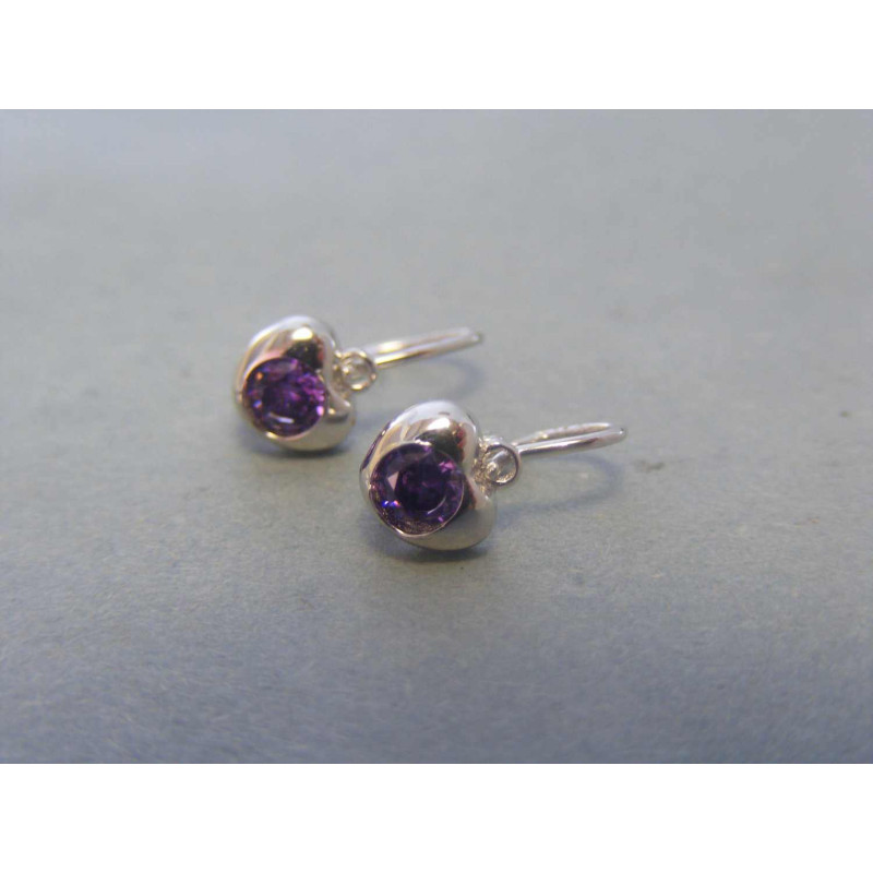 Jemné detské strieborné náušnice v tvare srdiečka, ktoré sú vyrobené zo striebra a zdobené fialovým zirkónom.