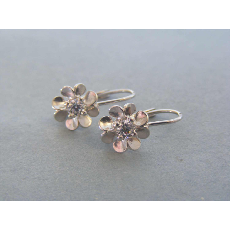 Zaujímavé dámske náušnice v tvare kvietka, ktoré sú zdobené zirkónmi a vyrobené zo striebra.