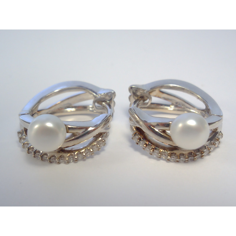 Pekné dámske naušnice vyrobené z ródiovaného striebra s perlou a zirkónikmi.