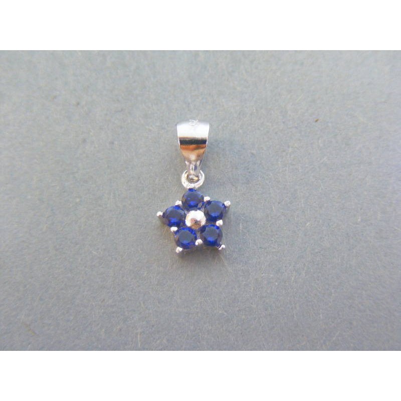Jemný dámsky prívesok v tvare kvetu s modrými kamienkami, prívesok je vyrobený zo striebra.