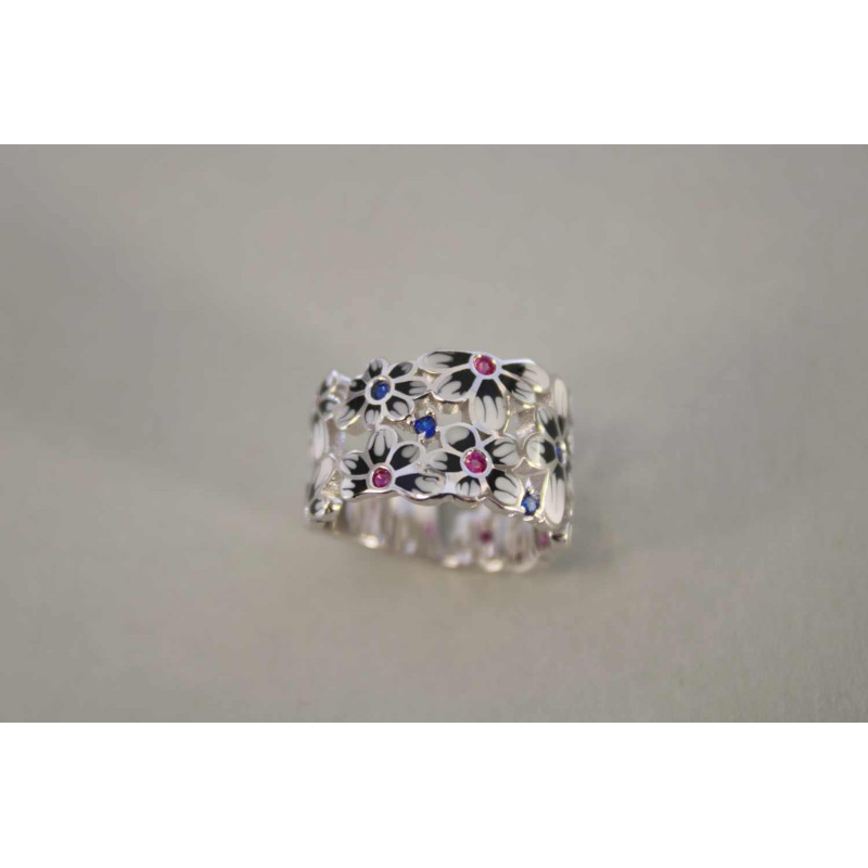 Zaujímavý strieborný dámsky prsteň so zirkónmi.
