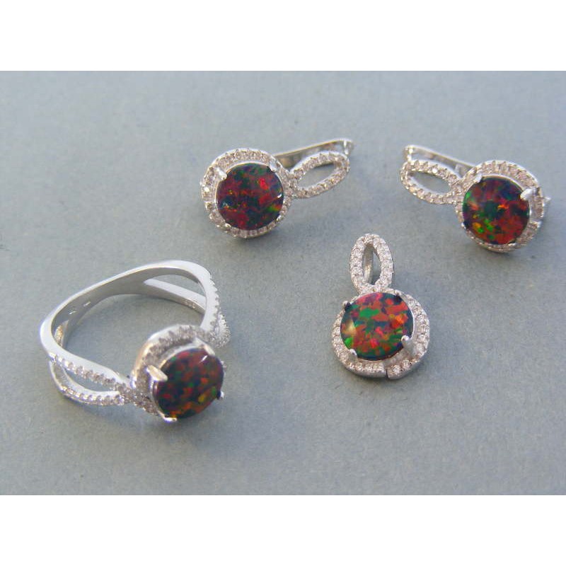 Strieborná dámska súprava náušnice, prívesok prsteň kameň opál DSS581154 925/1000 11.54g